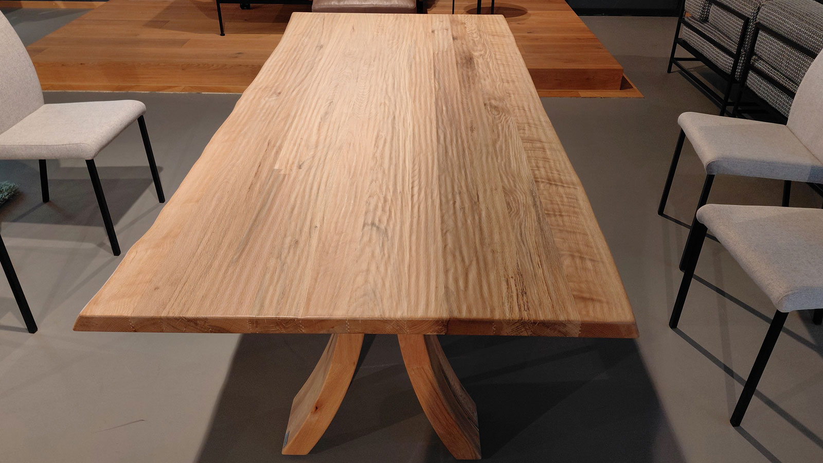 - Platte: 4 cm Sumpfeiche massiv, geschroppt