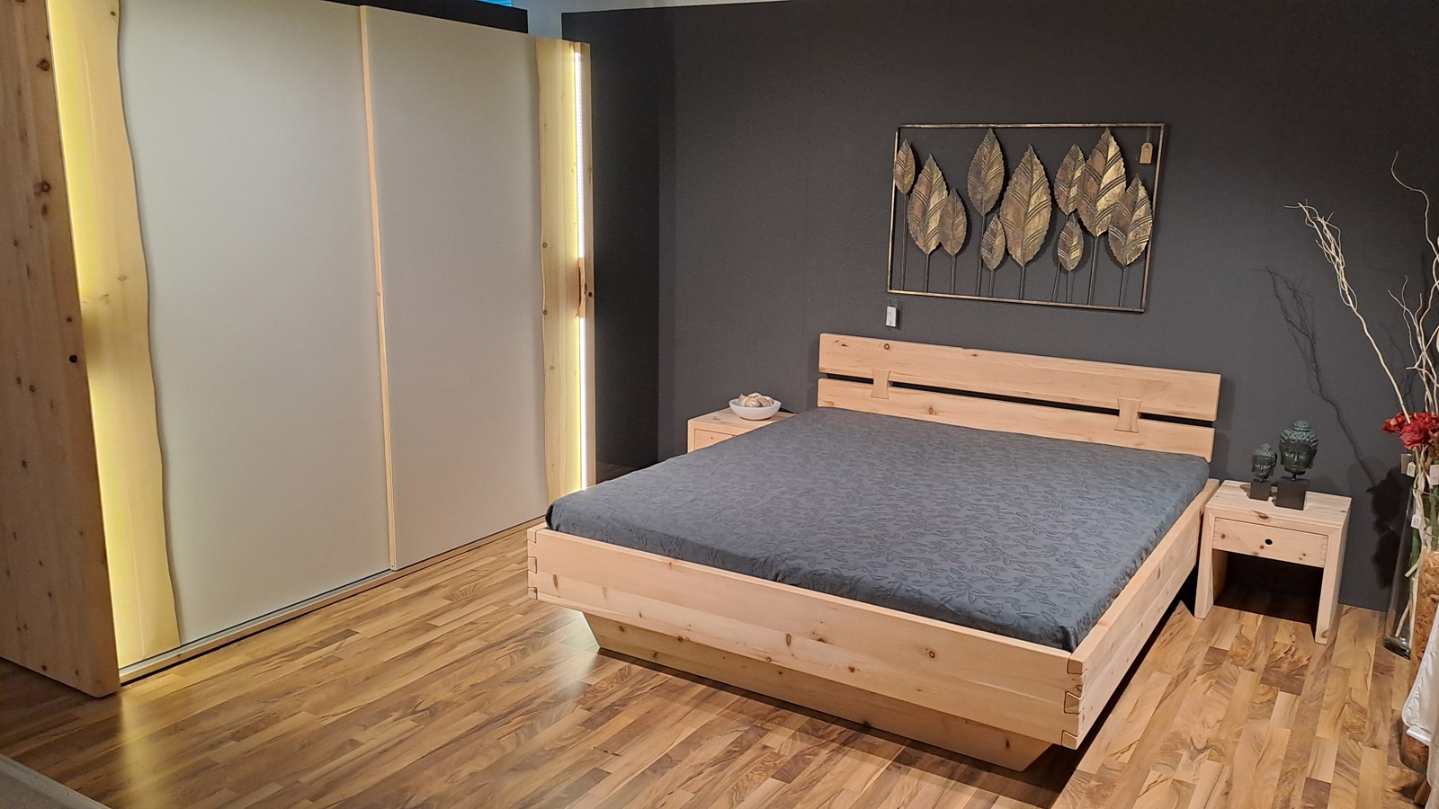 - Schrank: B 242 x H 218 x T 69 cm / Nachttisch: B 46 x H 45 x T 45 cm