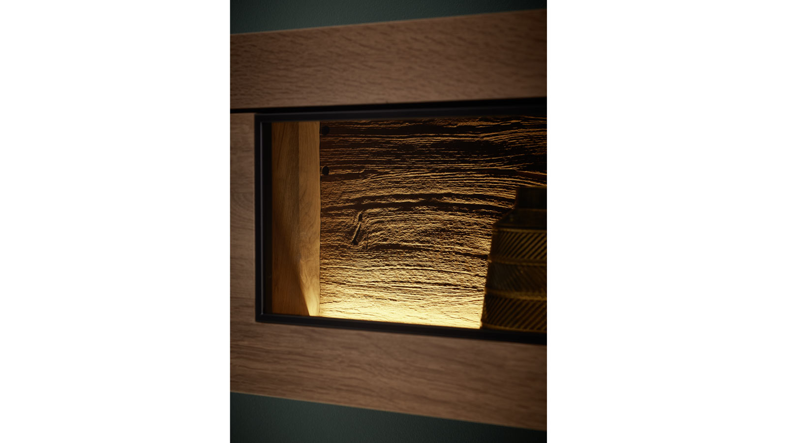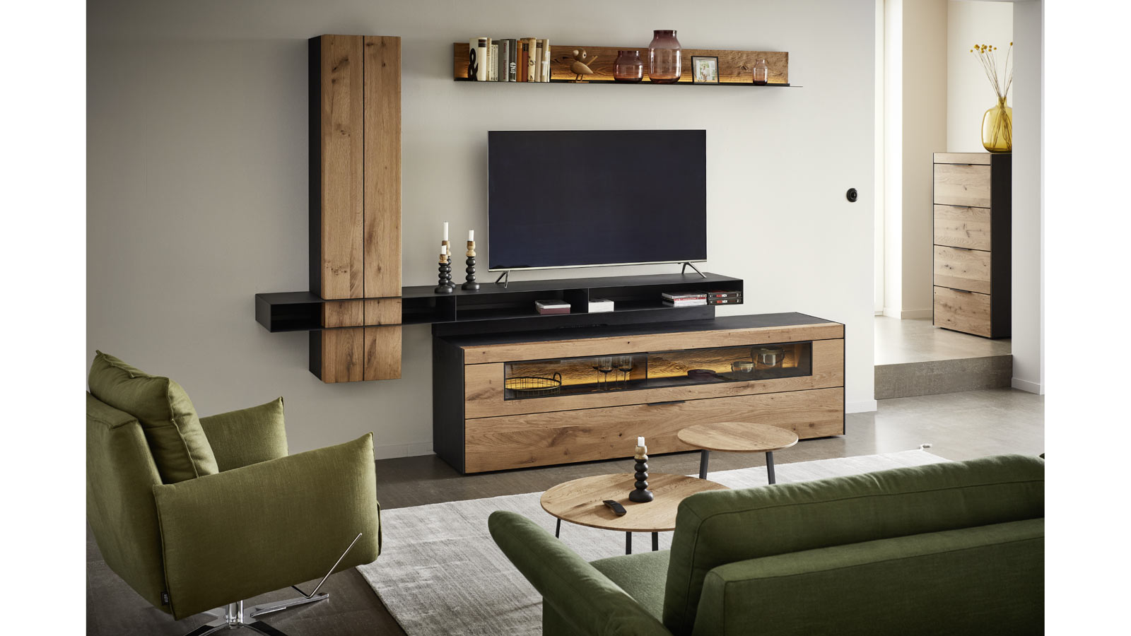 Lowboard mit Glasklappe und Schublade, Hängeelement 1-türig