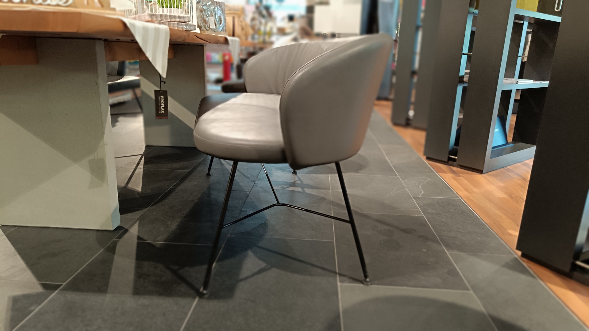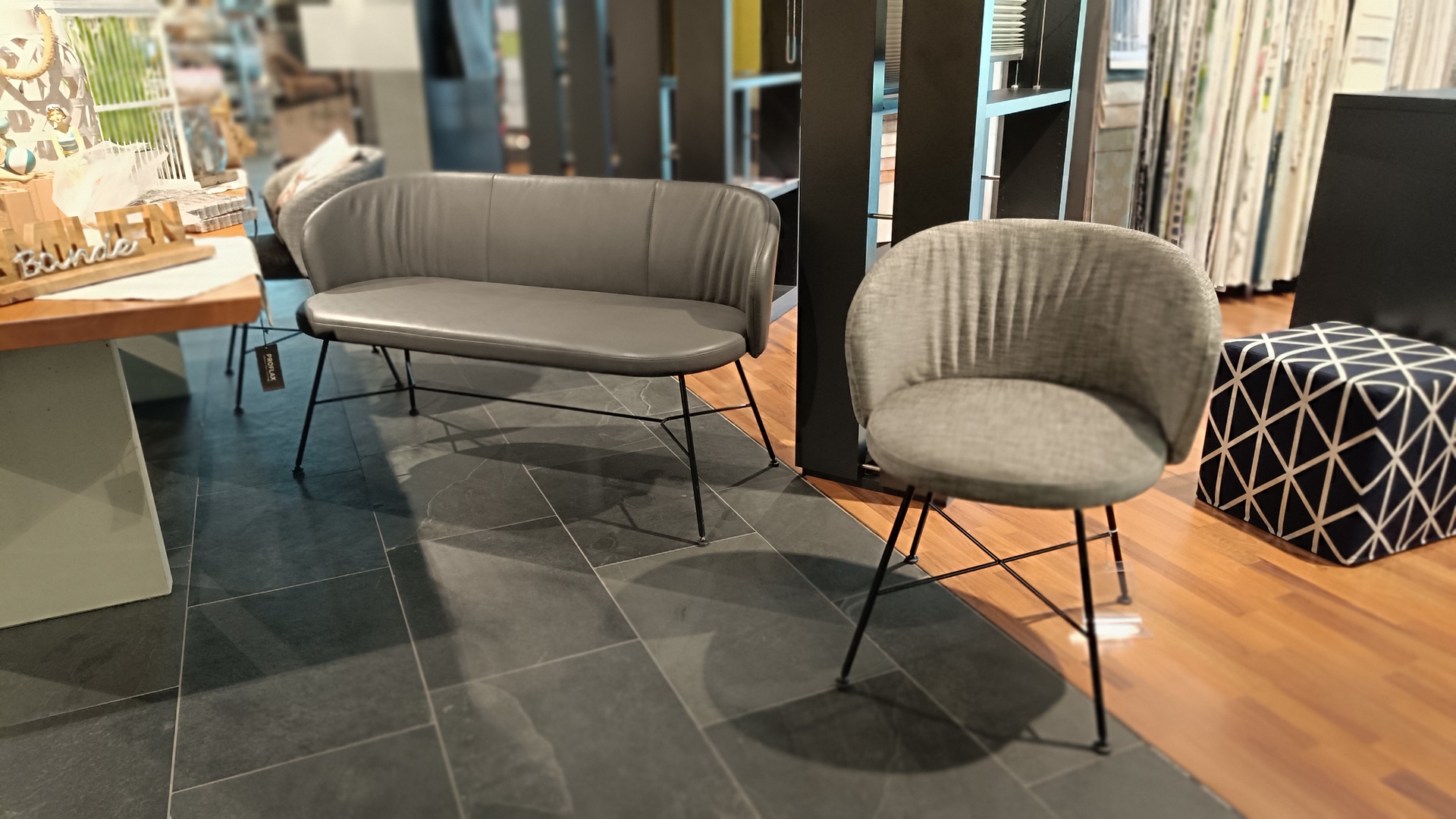 Bank Leder Donna grey, Drahtgestell Metall