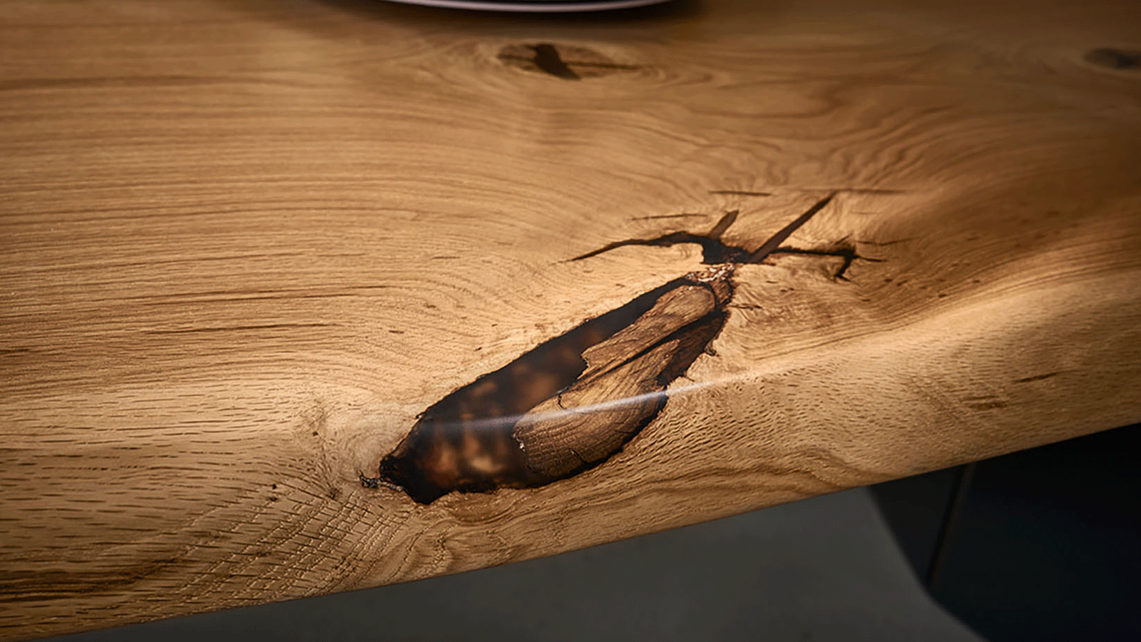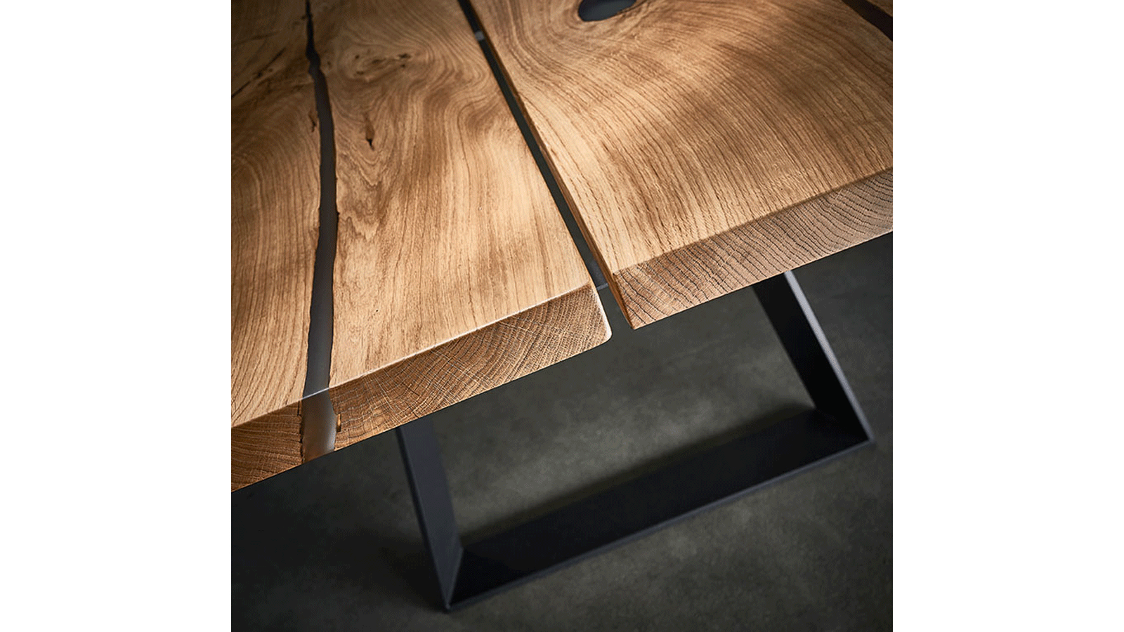 Massivholzplatte mit Epoxyharz gefüllt