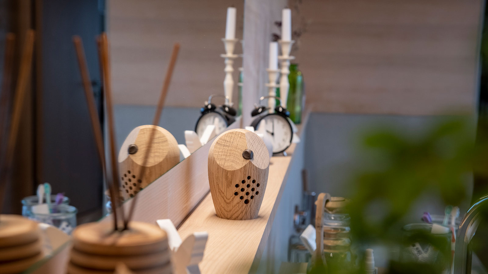 Sobald man ca. anderthalb Meter nah an das Produkt herankommt, ertönen während ca. drei Minuten wohltuende Waldgeräusche, die Sie in eine andere Welt eintauchen lassen.