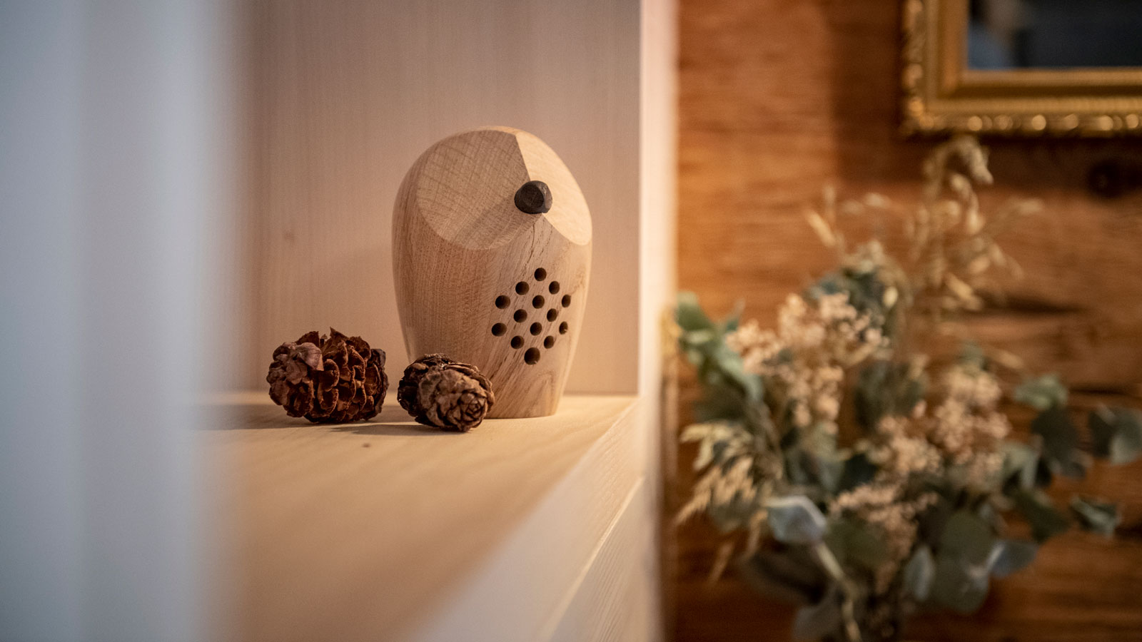Holz ist hygroskopisch, das heisst, es verändert sich bei Feuchte- und Temperaturschwankungen. «Huuri» gehört in den Innenbereich. Holz kann sich mit der Zeit verfärben.