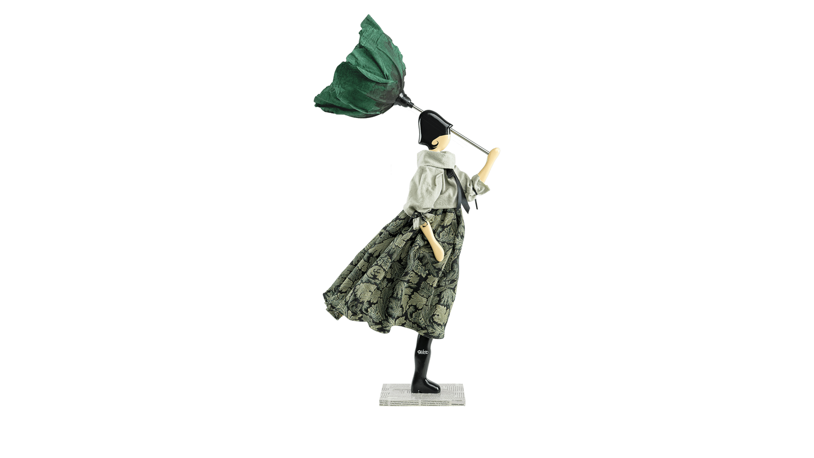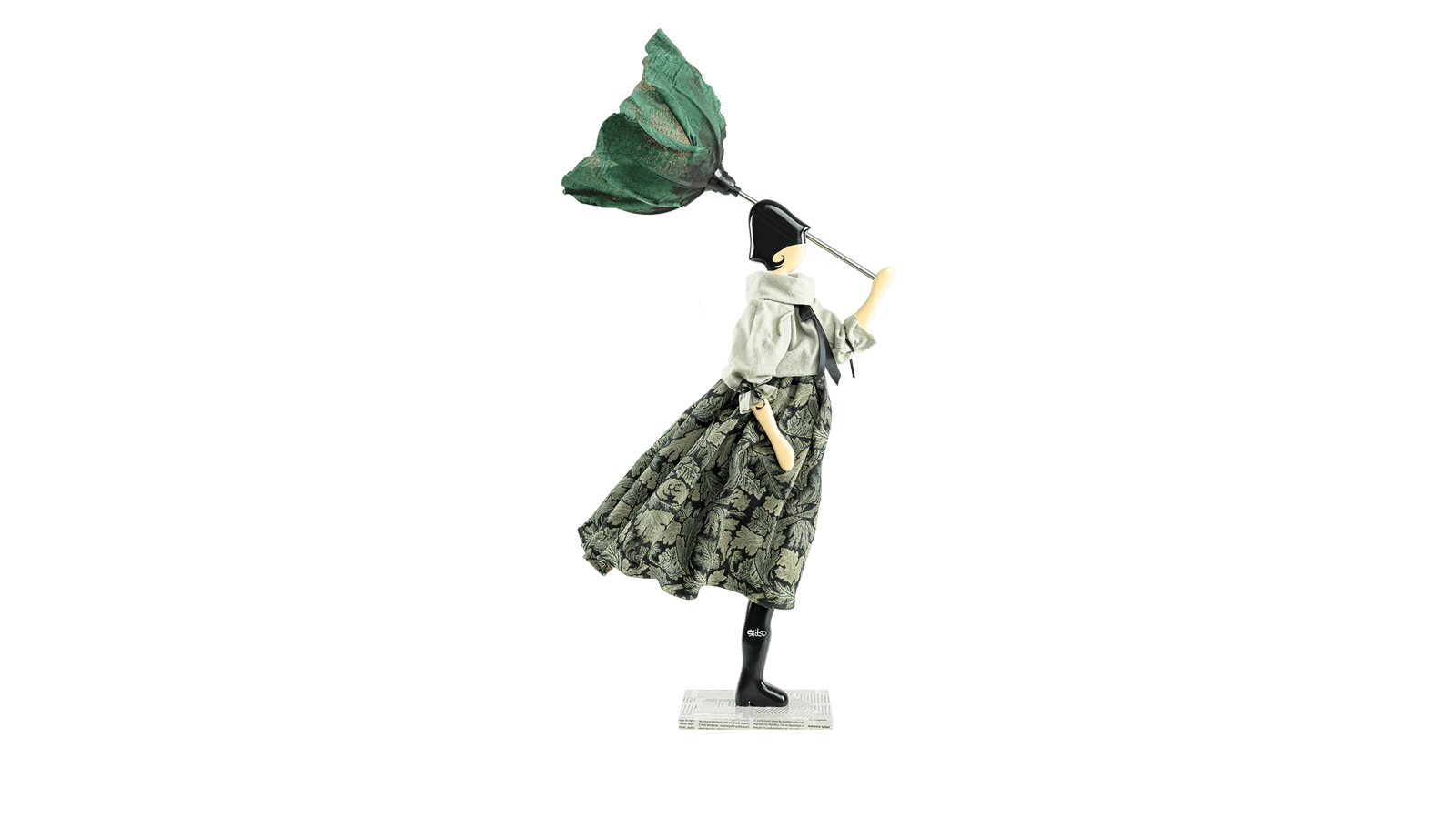 Handgefertigte Figur mit Lampenschirm und einem Unikat Kleid.