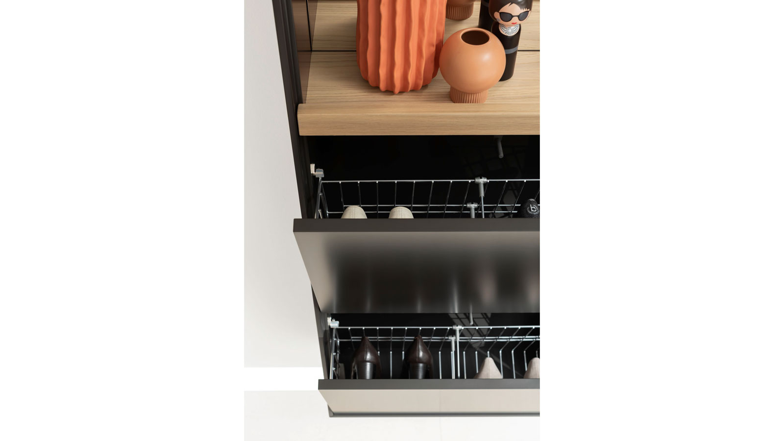 2 Klappen mit je einem Schuhkorb,