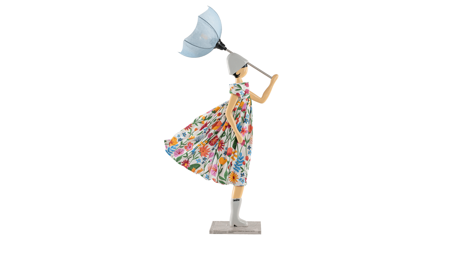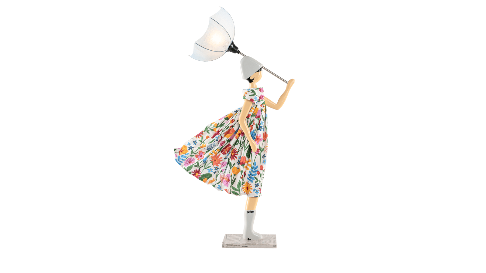 Handgefertigte Figur mit Lampenschirm und einem Unikat Kleid.