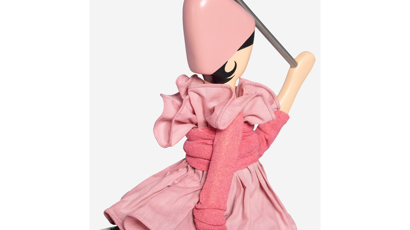 Handgefertigte Figur mit Lampenschirm und einem Unikat Kleid.