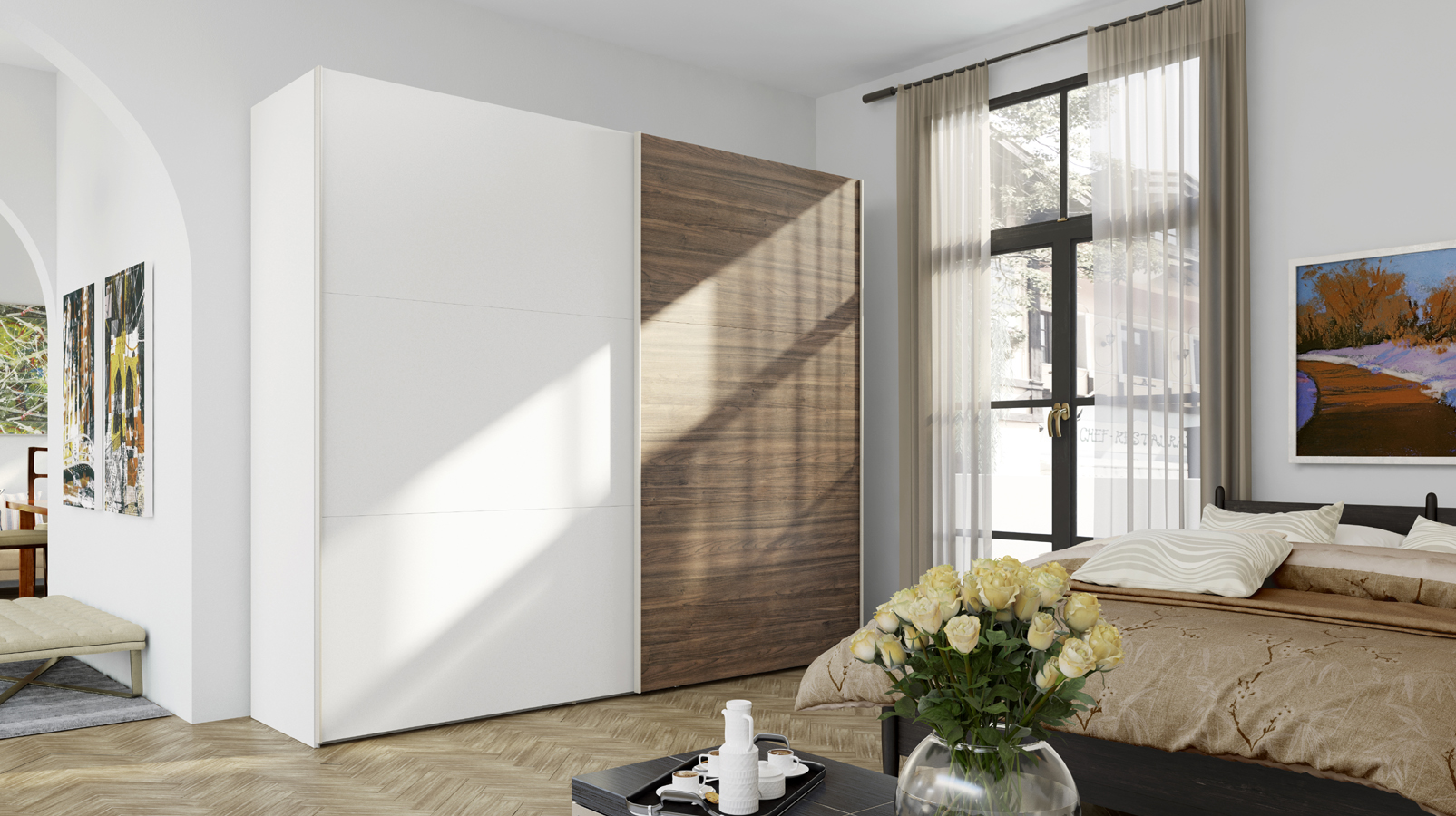 - Paneele: premiumweiss und Dekor mit Struktur Dunkelgrau