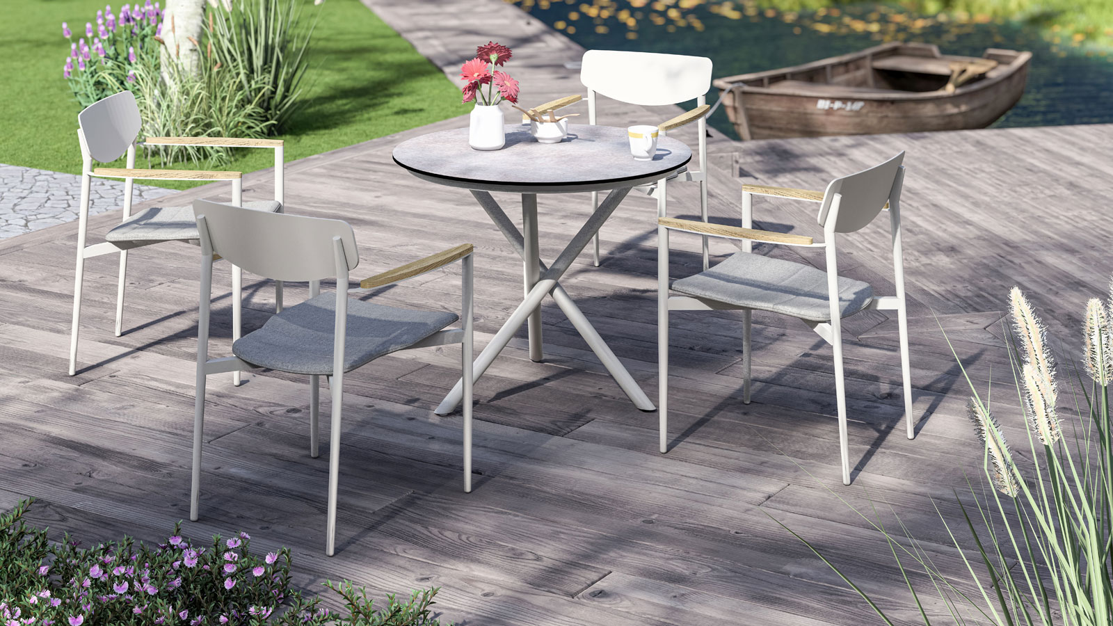 - Armlehnen: recyceltes Teakholz