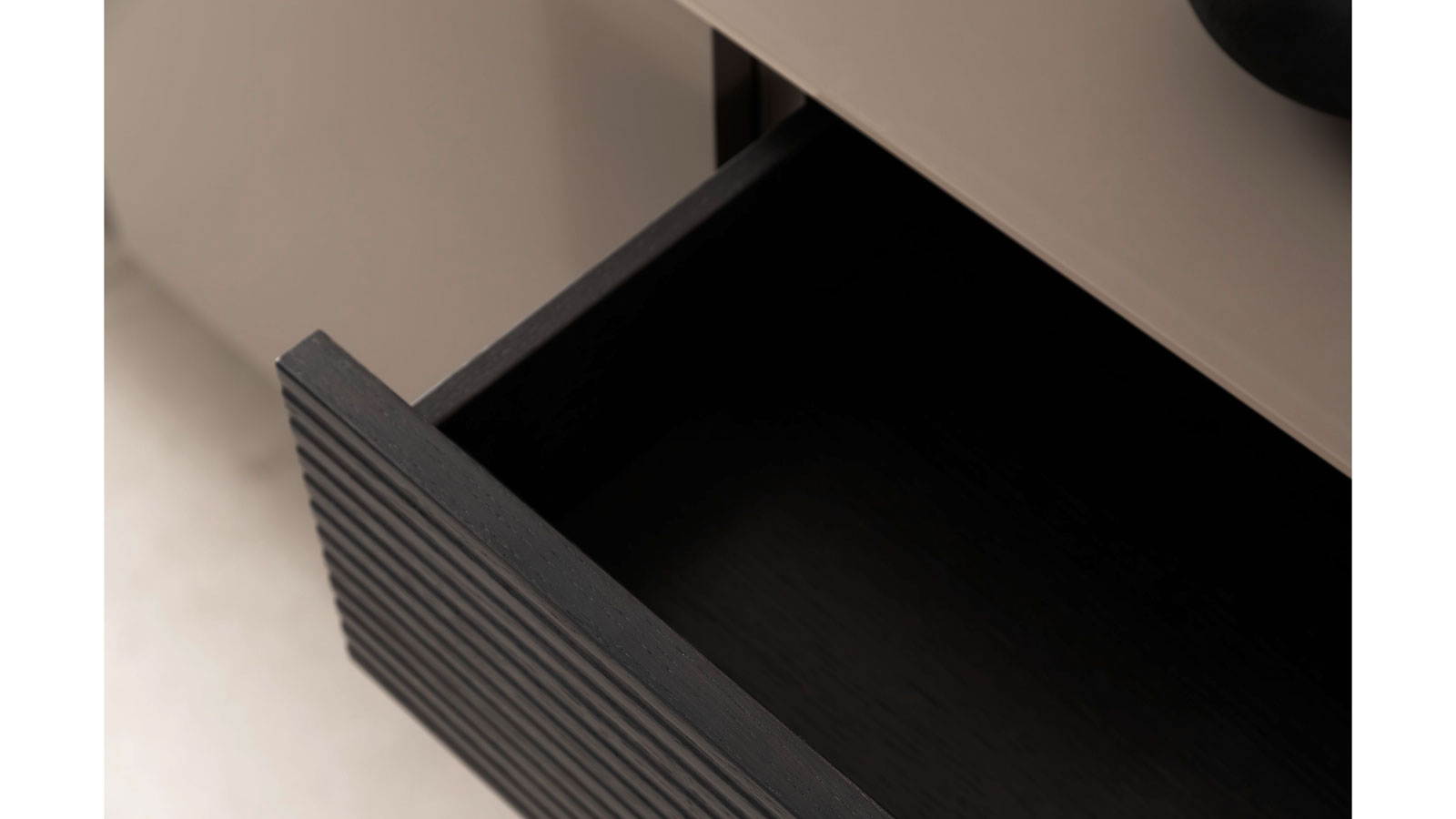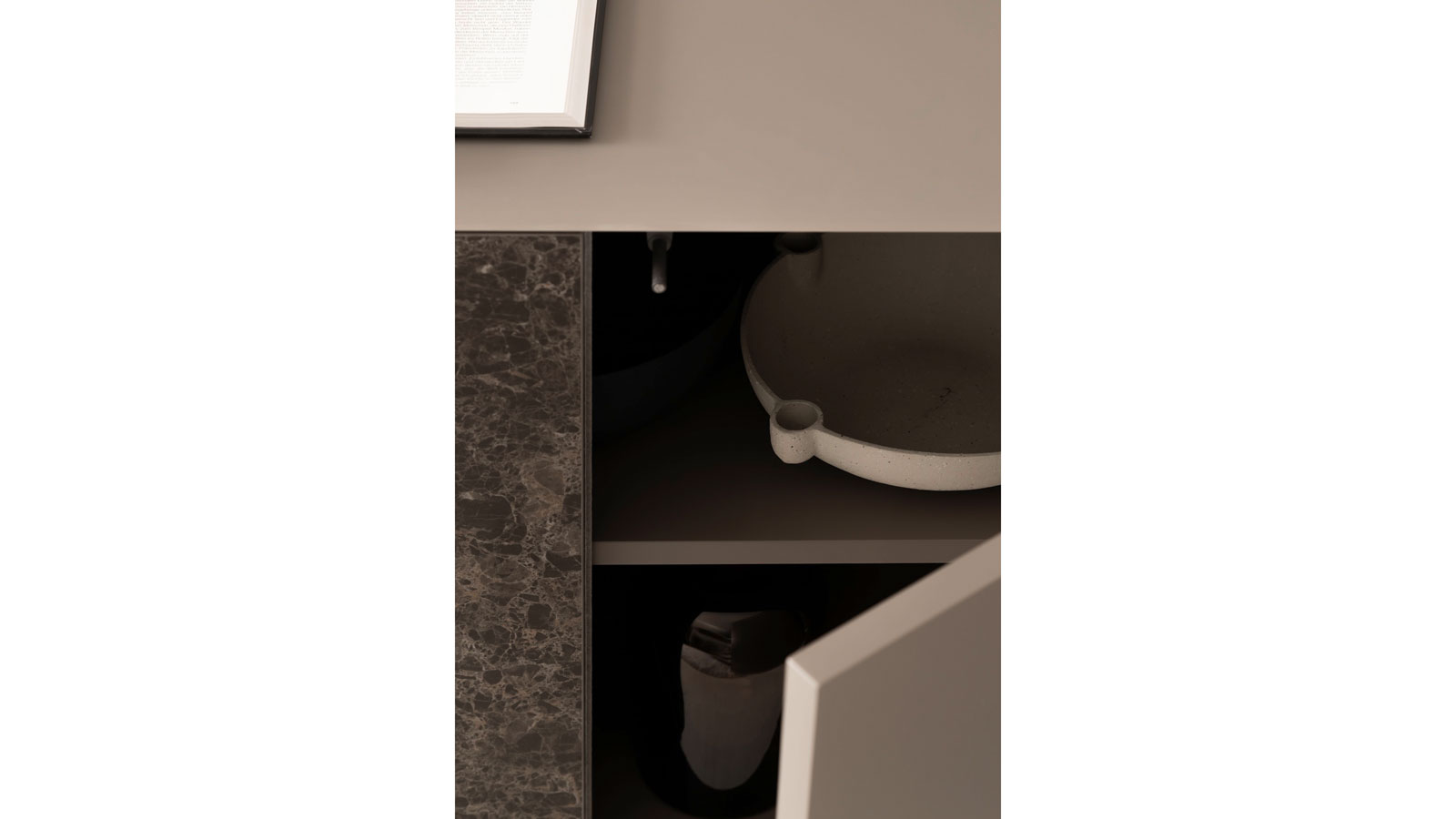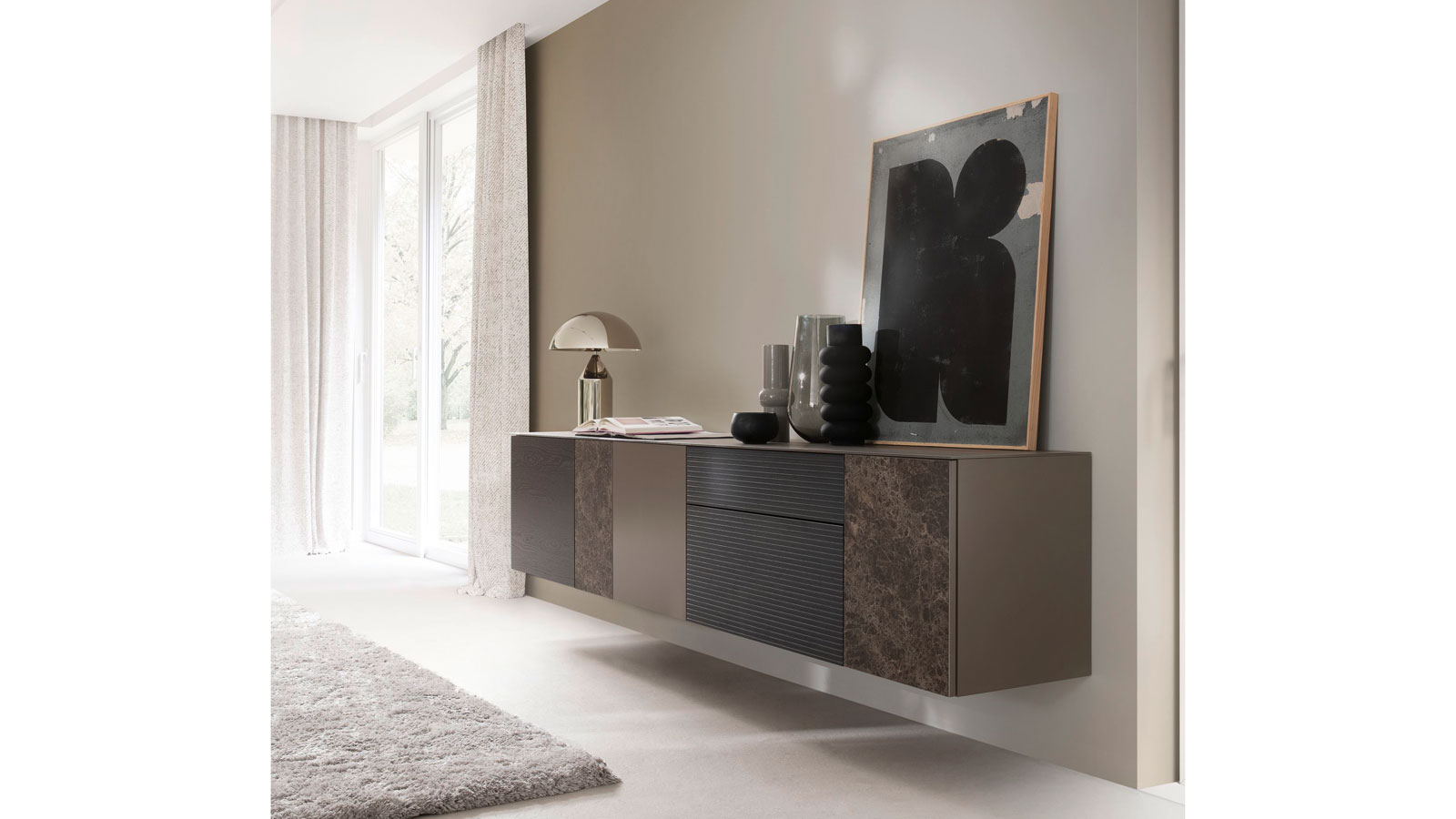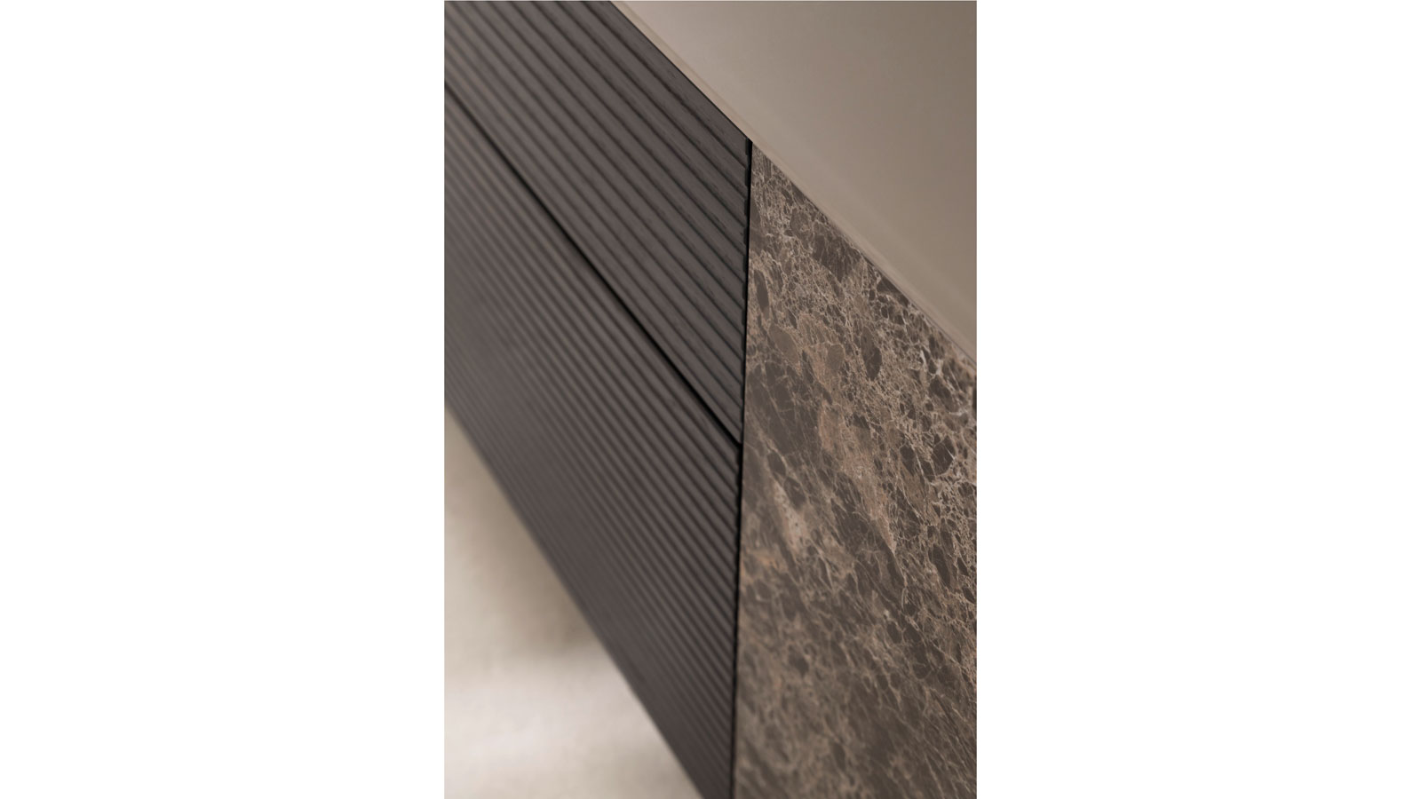 • Front: Wildeiche coffee 124 / Eiche anthrazit 121 / Keramik Emperador marrone 016 / lackiert sienna 465