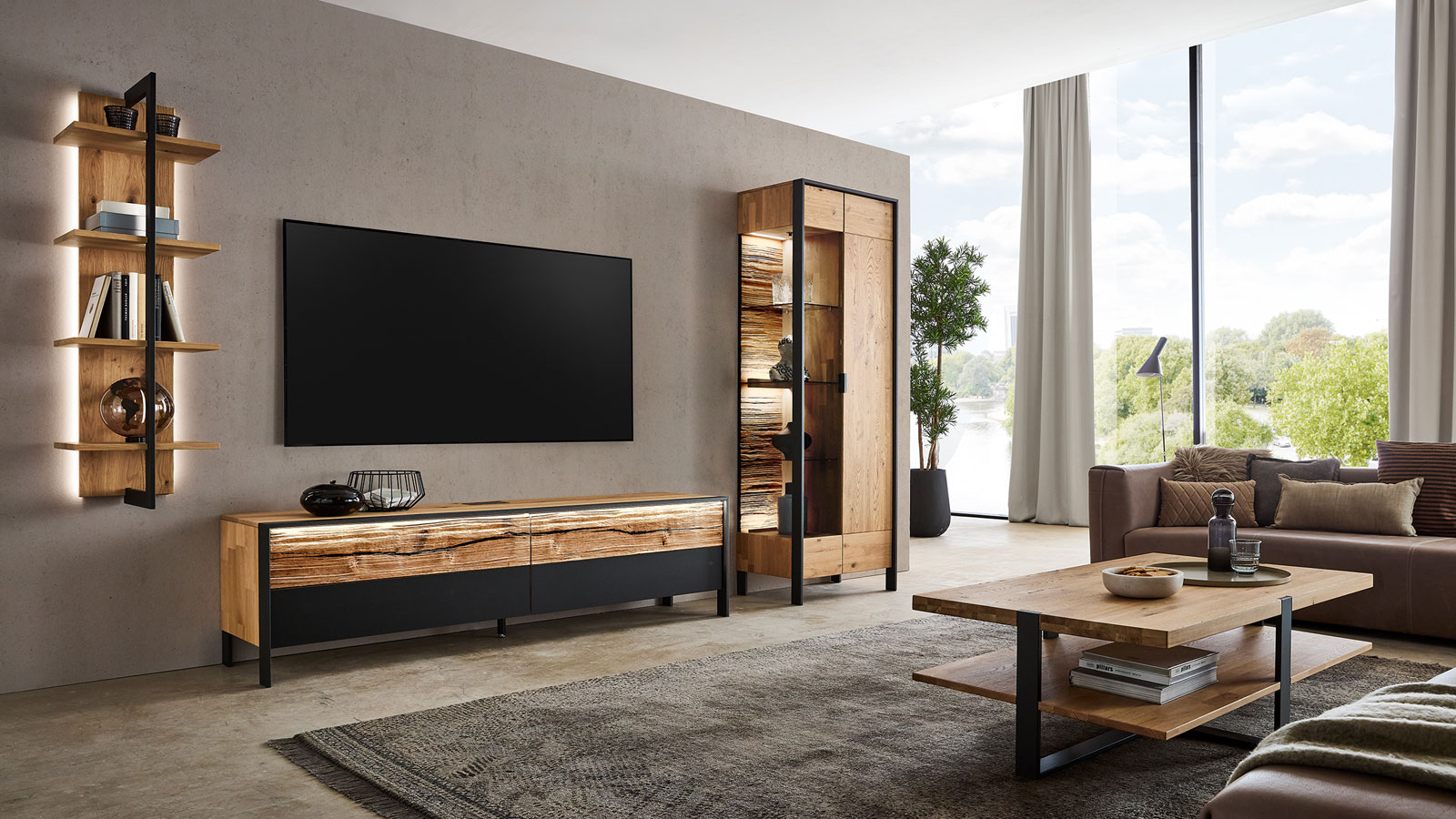 - Hängeregal: B 38.4 x H 135 x T 33 cm / Sideboard: B 204 x H 52.6 x T 44.3 cm